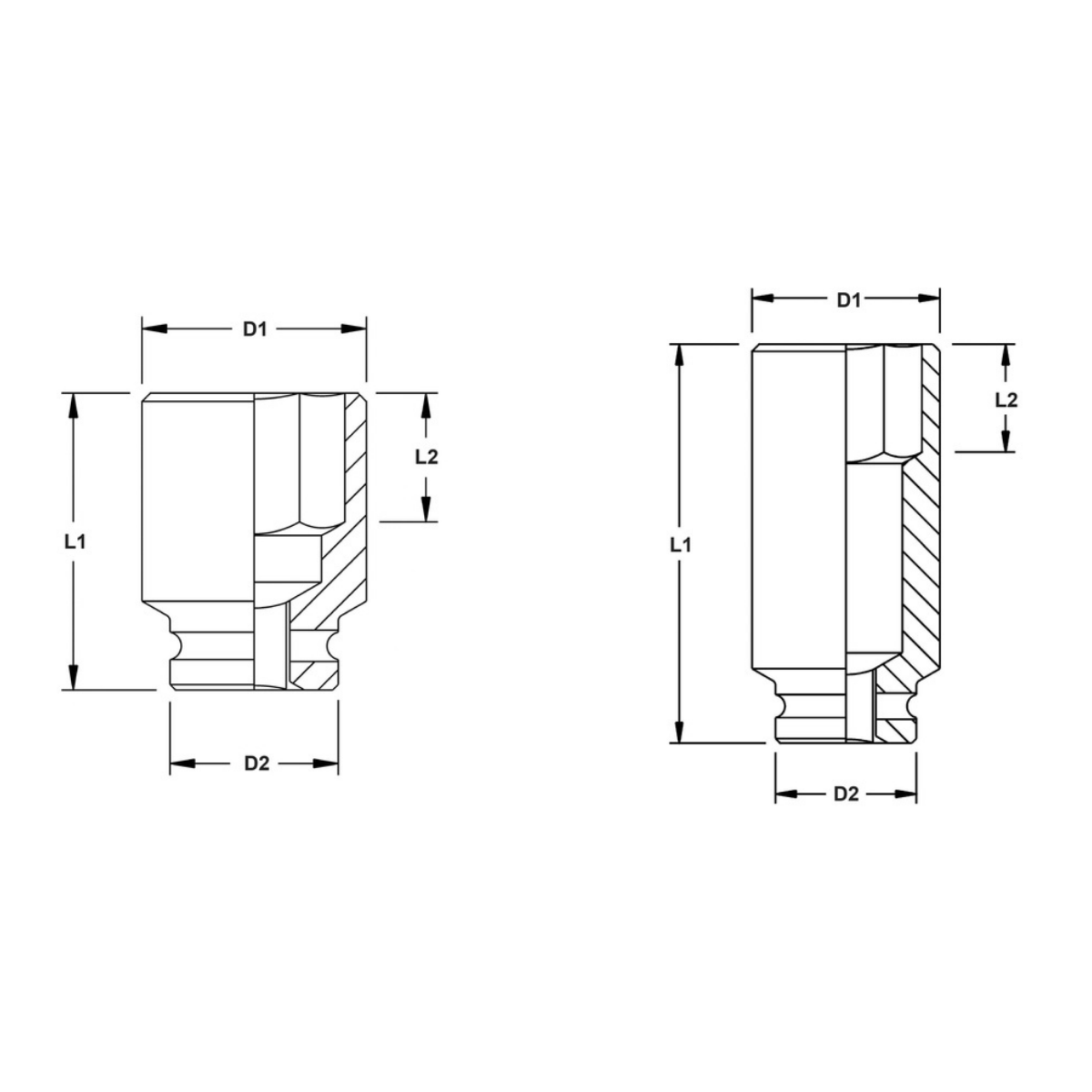 | SQUARE DRIVE | MODEL | STANDARD TYPE-ACROSS FLATS(MM) | DEEP TYPE-ACROSS FLATS(MM) |